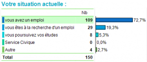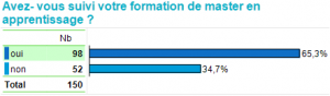 Sur 218 diplômés de master, 150 ont répondu à nos questions soit environ 68% de taux de retour.